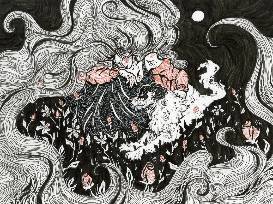 "Carmilla and Laura" (Microns, Gouache)